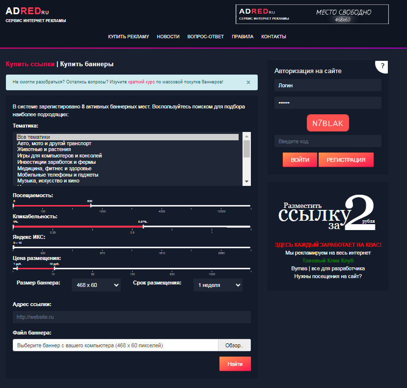 4 Посетители. Данный параметр позволяет ограничить поиск площадок по количеству уникальных посетителей в сутки. Чем выше этот параметр, тем большая аудитория увидит ваше рекламное объявление.
